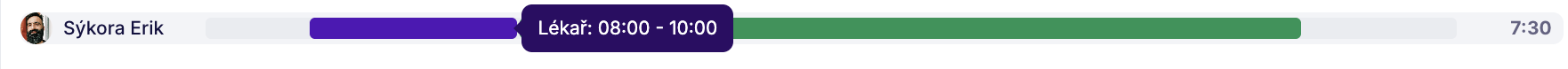 Dále se Vám v docházce vždy ukáže značení, kolik je zrovna hodin a v jakém časovém bodě se v dashboardu momentálně pohybujete a kolik je aktuálně hodin.