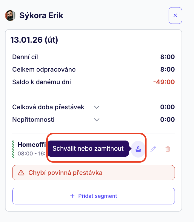 Pro schválení/zamítnutí stačí kliknout na ikonku razítka.