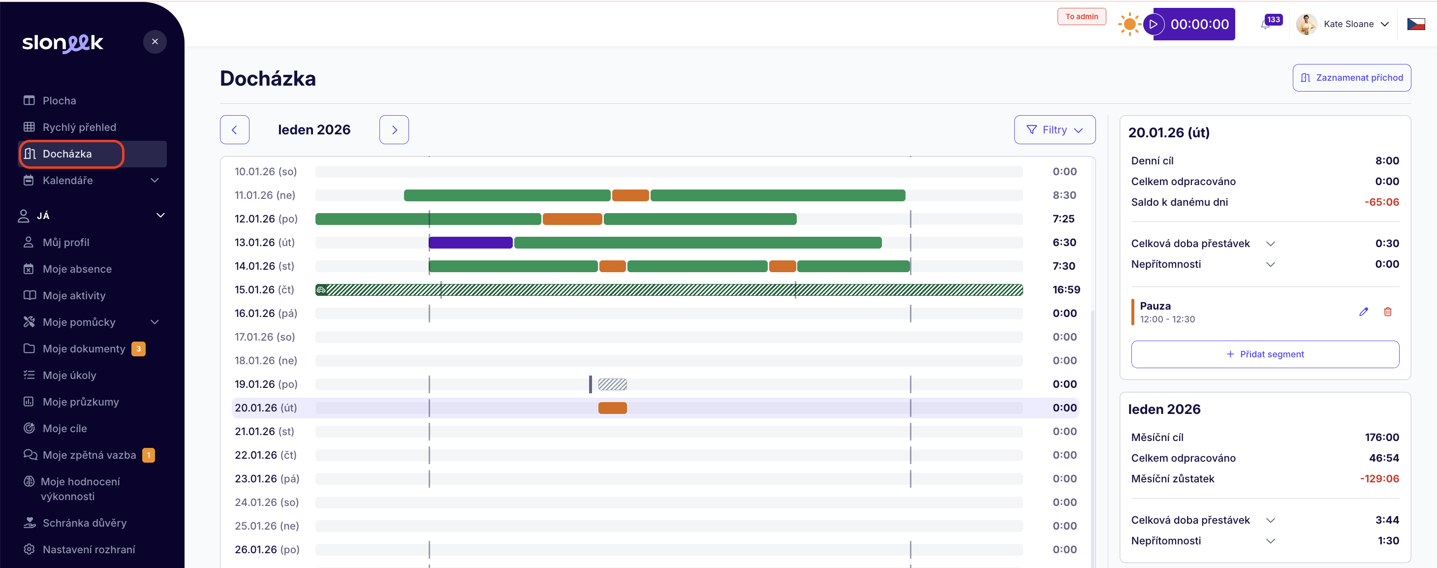 Each attendance day is bounded by the working hours defined in your work contract. This makes it easy to see whether attendance exceeded the working hours or, conversely, whether the required working time was not completed on a given day.